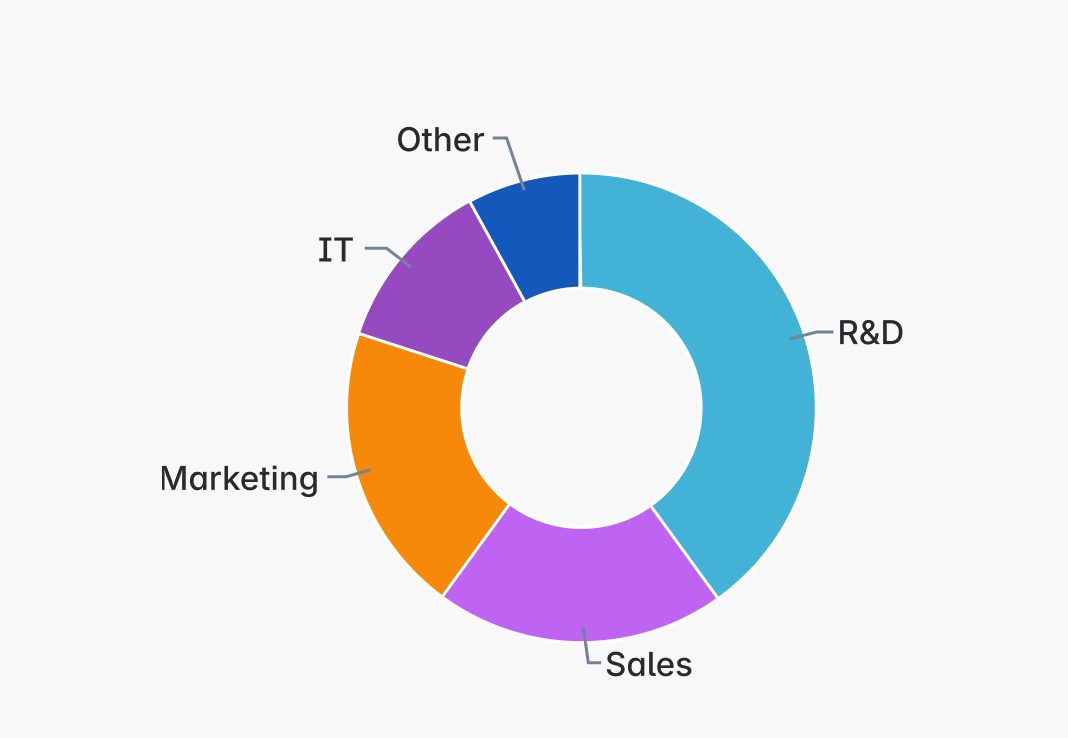 Our chart colors don't support accessible pairings with text, which need at least a 4.5:1 contrast. Consider placing text next to the chart element instead.