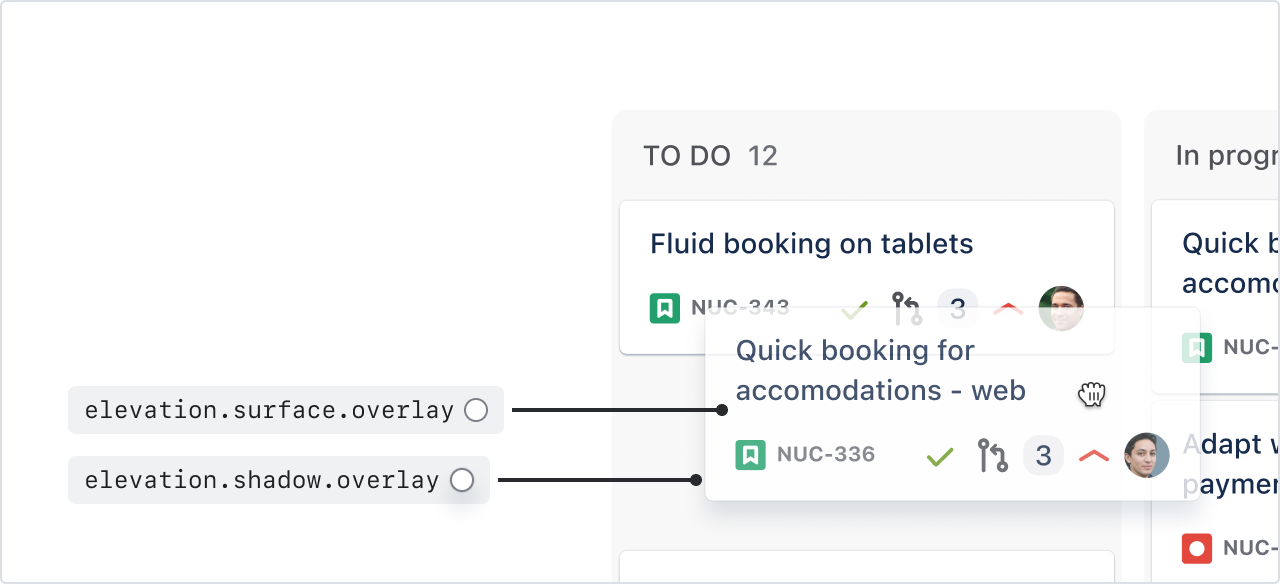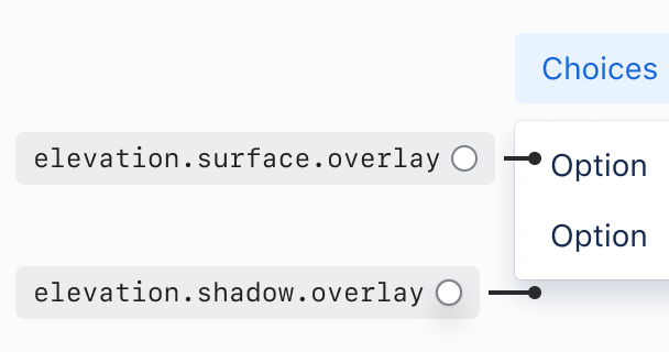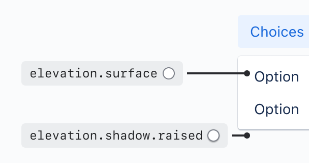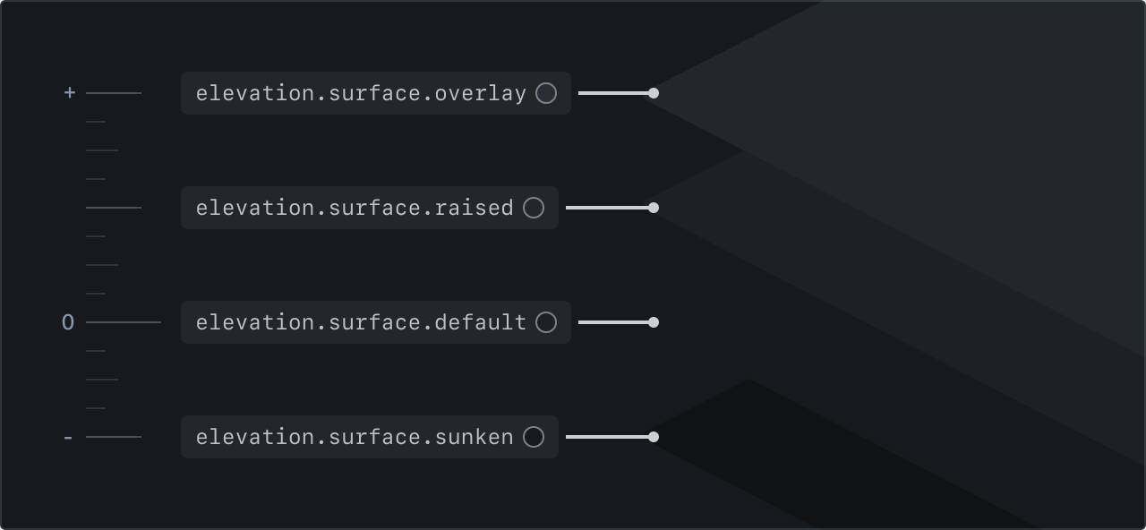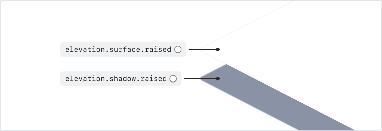 The elevations use design tokens to apply different surface levels. The highest two elevation surfaces, raised and overlay, are paired with shadows to create more depth.