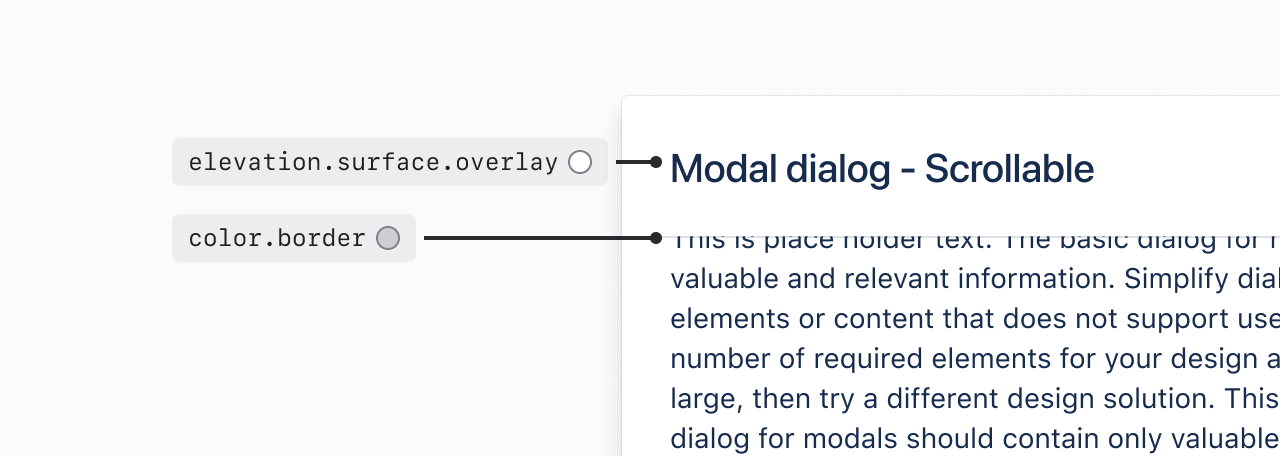 For the full list of elevation design tokens and their values, see our design token reference list. Every token comes with a description to help you ensure you’re using the correct one.
