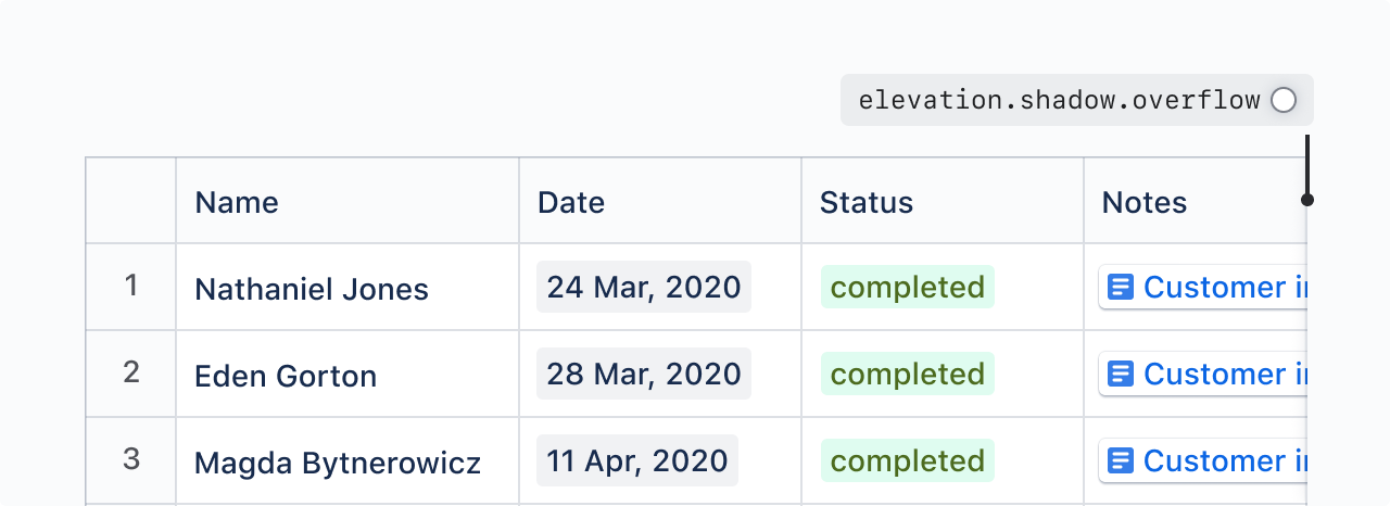 Overflow shadows are reserved for experiences where a border might be easily missed, such as in very small UI or tables that use borders to separate cells.