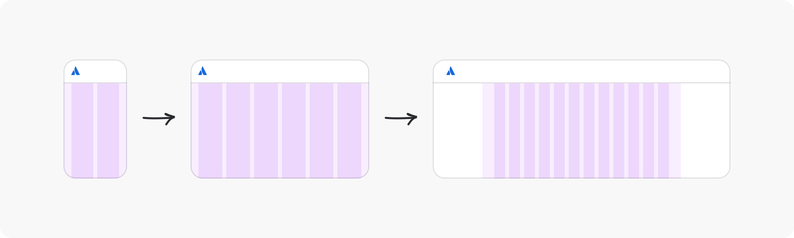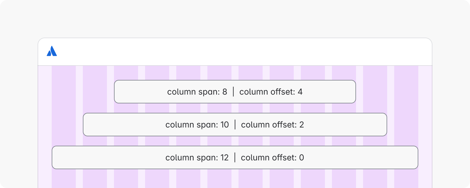 Content does not need to span across all 12 columns. It can span a smaller set of columns, resulting in a layout with content centered on a 12 column grid.