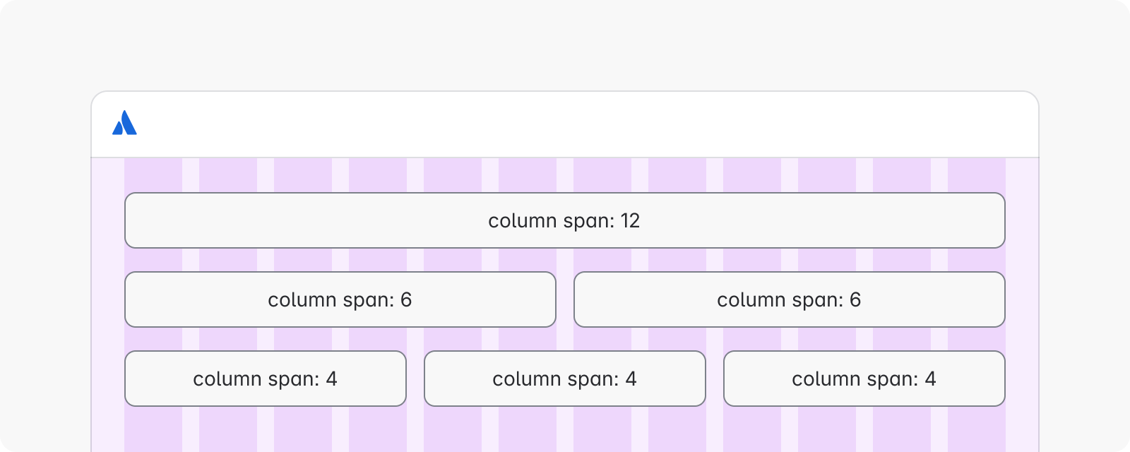 Our grid has 12 columns for aligning content. Content should span across 3 or more columns, up to a maximum of 12. For flexibility, mix and match the number of columns used to unlock a variety of layouts across different breakpoints.