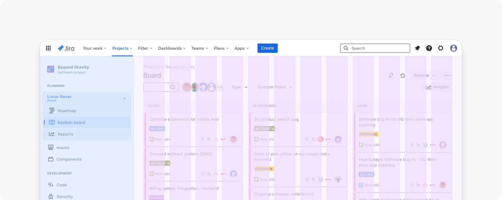 They are best used for information-dense pages, such as kanban boards, to maximise screen real estate. Here’s how a fluid grid is applied in Jira: