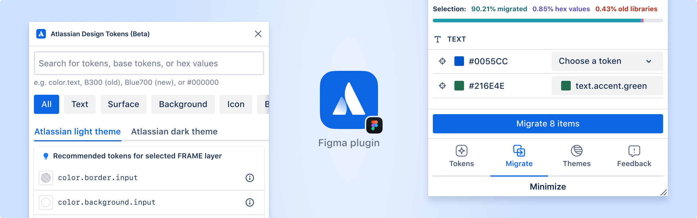 Install and use the Atlassian Design Tokens Figma plugin to simplify finding and applying Atlassian design tokens in your designs.